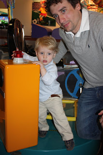 Luke loved it! He ran from one game to the next and as soon as we put a token in the slot-he was off to the next one! He tried to sit in many of the kids lap's or he would just push them off the rides so that was a little embarrassing but all the kids and parents were so nice about it. One mom said, "He's fine!" and I said, "He's trying to sit on your kid's head." HAHAHAHAHAHA! The joys of having an 18-month-old boy are endless!